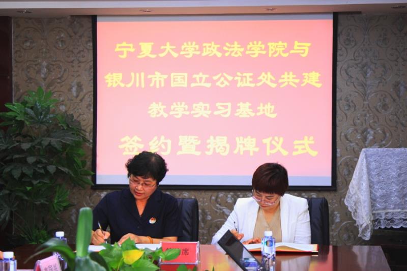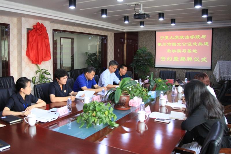 与银川市国立公证处共建教学实习基地签约暨揭牌仪式在银川市国立公证处举行。自治区司法厅律师公证处鹿守岩调研员、银川市司法局李卒副局长、银川市国立公证处于洧主任、银川市司法局公证律师管理科高国兴科长、政赌场老虎机攻略