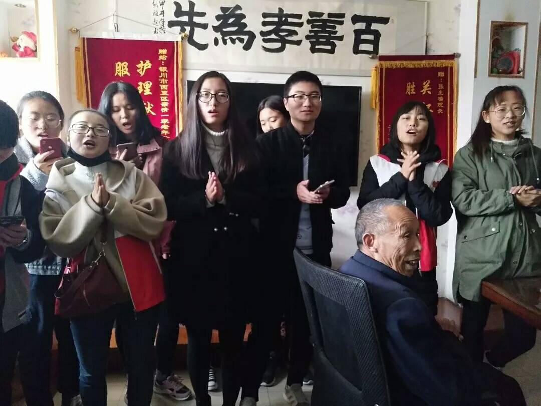孝,从来不是言于唇齿的关怀,也不是表于众人的惺惺作态。孟子有云:“老吾老,以及人之老;幼吾幼,以及人之幼”,是国之所倡,亦是时之所需。面对年近百岁的老人,我们有着对这些老人精神世界的敬畏与好奇,也有着对生命的感恩与珍惜。起初,我们的任务从打扫卫生开始,看似简单的工作 ,我们做的小心翼翼,这些老人多数行动不便,除了考虑卫生清洁,更要考虑行动的安全。