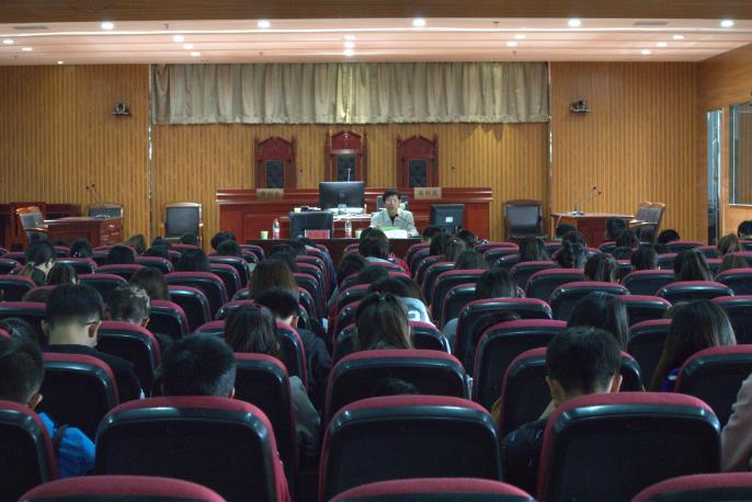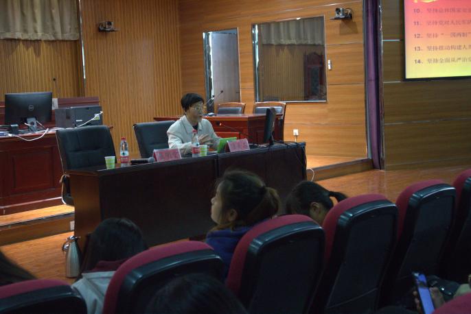 关工委五老报告团成员陆美石老师,于贺兰山校区文荟楼模拟法庭,为同学们深刻解读了习近平新时代中国特色社会主义思想。讲座由政赌场老虎机攻略