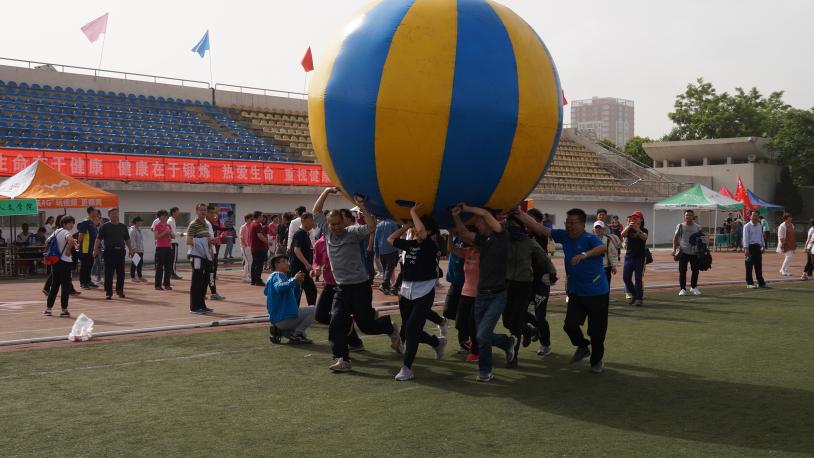 教师在每一个竞技与趣味并存的项目里都热情洋溢地参与着、欢笑着,笑声与汗水齐飞,并在不倒森林等比赛项目中通过积极配合、团结合作取得了优异成绩。