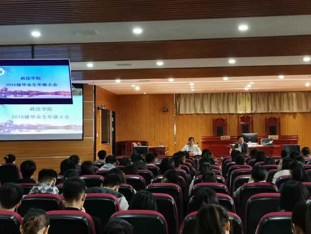 10月14日中午,政赌场老虎机攻略 召开2016级毕业生大会,赌场老虎机攻略 党委副书记崔明堂出席大会并讲话,2016级全体毕业生参加。大会由辅导员丁颖主持。