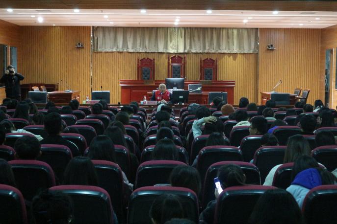 部分教师党员和全体学生党员到场聆听。