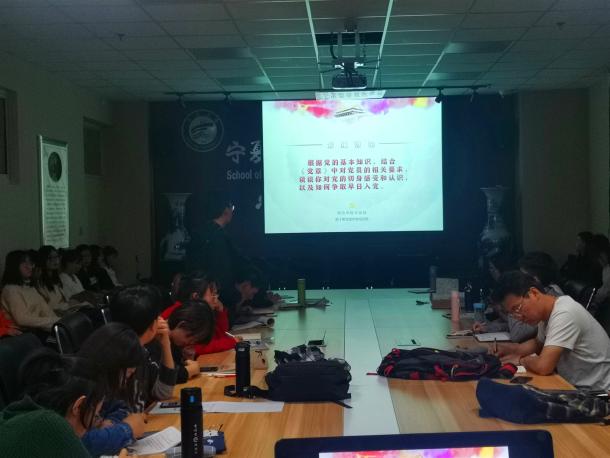 组织第十期发展对象培训班全体学员于文荟楼801会议室观看主题教育影片《可爱的中国》;组织第三十六期入党积极分子在模拟法庭观看主题教育影片《周恩来的四个昼夜》。