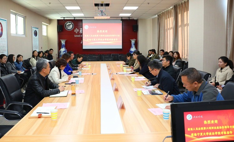 第六巡回法庭综合办马渊杰主任向师生们介绍了第六巡回法庭自2016年12月29日挂牌以来取得的成果及落实习近平“5.3讲话”精神的庭校合作育人机制。