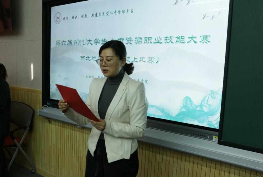 党委书记潘瑞致开幕词,她首先代表承办单位向西北地区各个高校的参赛师生、积极参与本次比赛的专家学者、各企业嘉宾表示诚挚欢迎。随后她指出,本次比赛的目的是联结各高校人力资源管理相关专业师生,促进交流与互动,同时增进企业与高校对接,进一步优化高校人力资源管理相关专业人才培养。最后,她希望参加本次比赛的所有选手都能够充分表现,发扬风格,取得优异的成绩。