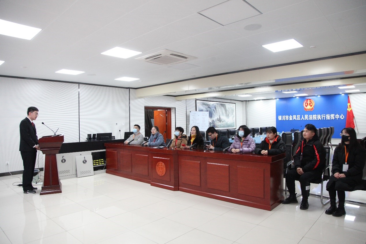法律系法律系主任朱蓓予、教授刘芳、法律系本科生党支部书记王嘉豫以及法律系2017级本科生郭福臻等7名在金凤区人民法院实习学生参加此次活动。