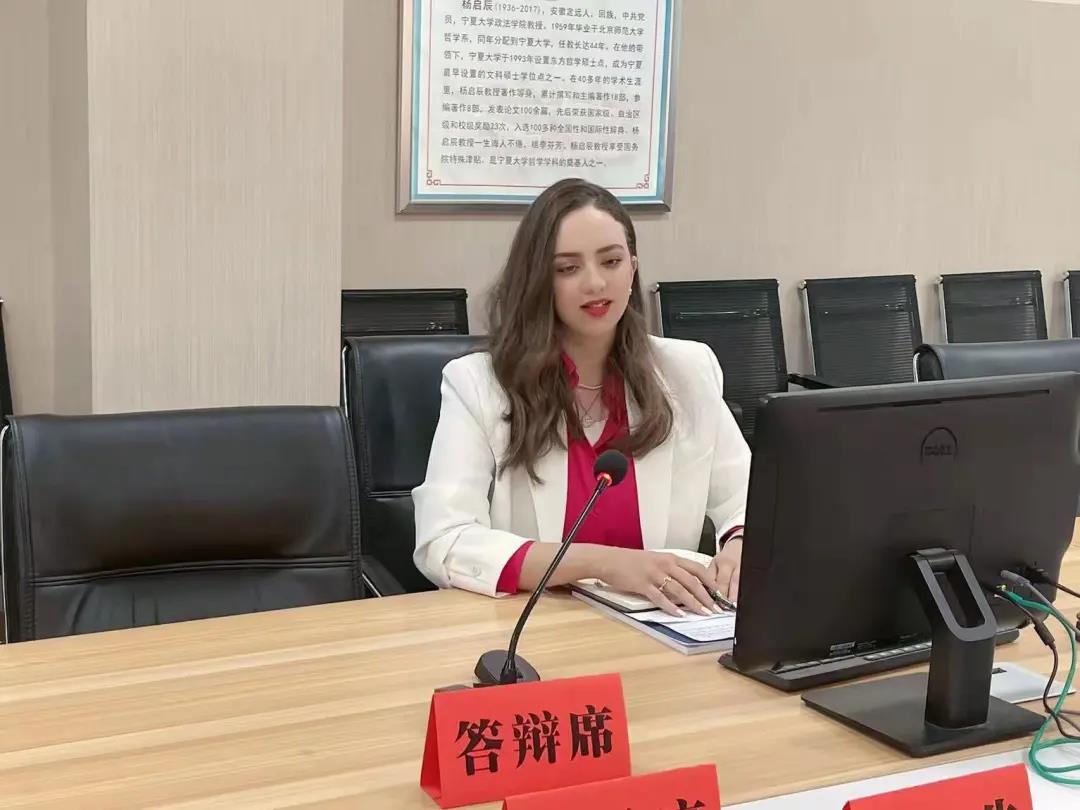 的老师对她生活和学习的照顾,感谢了中国和埃及家人对她的支持。虽然,埃及时间恰是凌晨两点,其远在埃及的家人也通过线上的方式,旁听了本次答辩。笑笑的博导孙振玉与笑笑父亲通过腾讯会议,以网络形式进行了时空对话,其父亲表达了对中国的感谢之情,让严谨的答辩现场,迅速的有了温度,让在座的每一个人都感到动容。