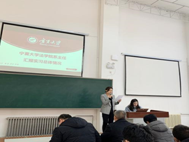 向到会师生汇报了毕业实习中期检查的相关情况。之后,法学专业、行政管理专业、社会学专业六位优秀实习生对自己的实习工作进行了汇报。虽然法律系和行社系工作各有不同,各位同学在实习中都增长了技能,学到了知识,丰富了见识,收获了经验。学生工作汇报结束,法律系刘芳教授、行社系倪富静老师作为教师代表也作了精彩发言,肯定了学生在实习期间取得的成绩,同时也寄语学生奋发拼搏、继续努力。