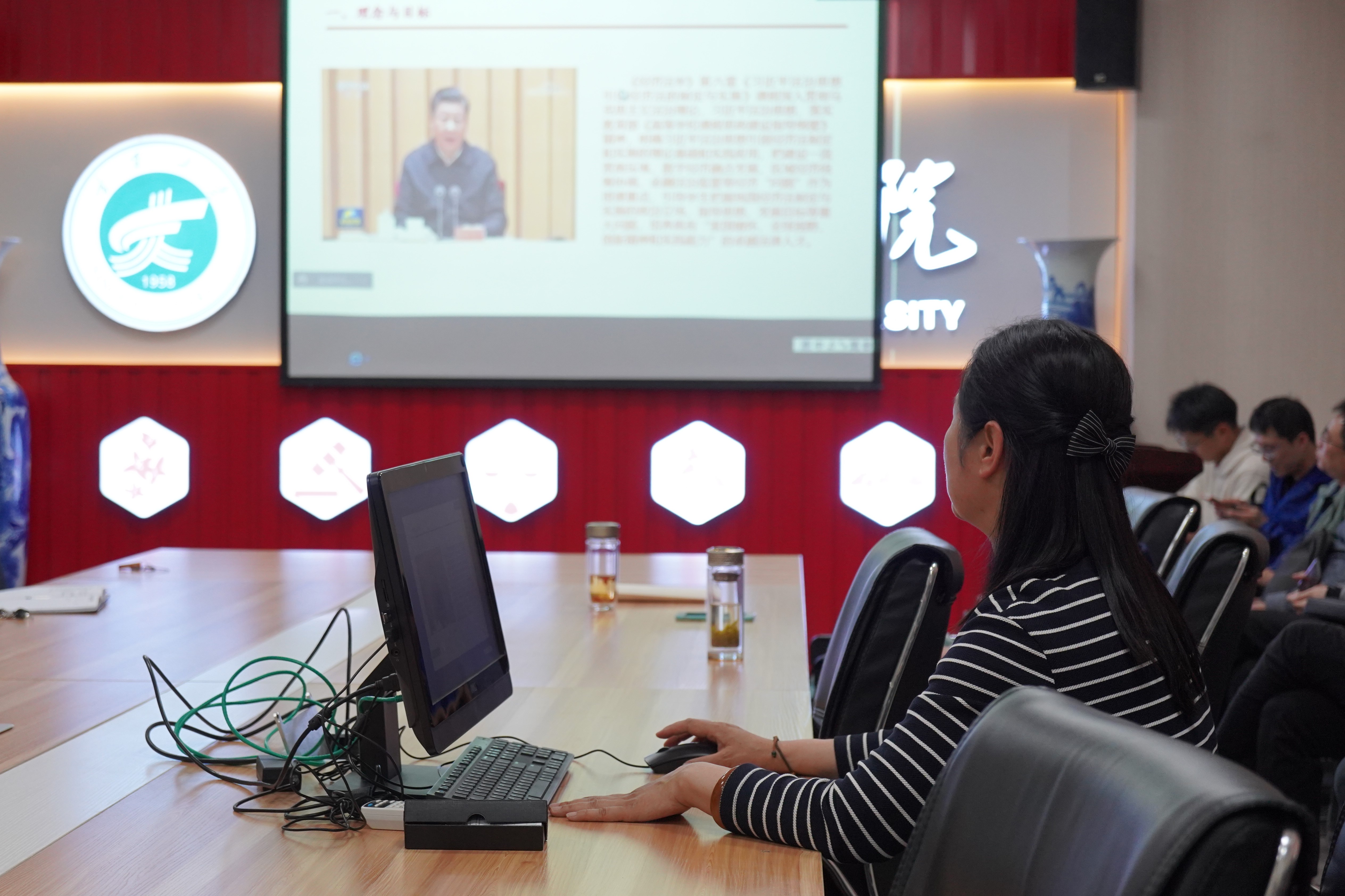 在文荟楼801会议室召开教职工大会,采用线上线下结合方式进行期中教学集体观摩。大会上刘芳、张琴和王俊丽分别作课程汇报。