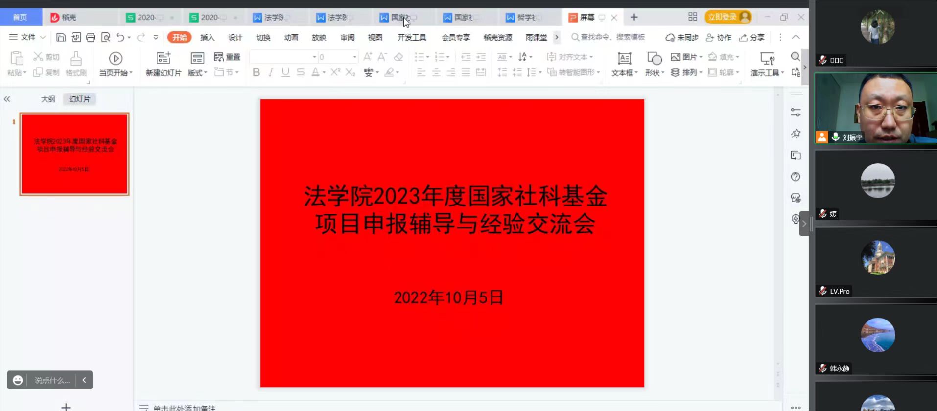 近三年科研项目情况进行了细致分析,并解读了《国家社会科学基金管理办法》《国家社会科学基金项目资金管理办法》。通过讲解,各位老师进一步明晰了项目申报进度安排,并对国家社科基金项目有了更加深入的了解。