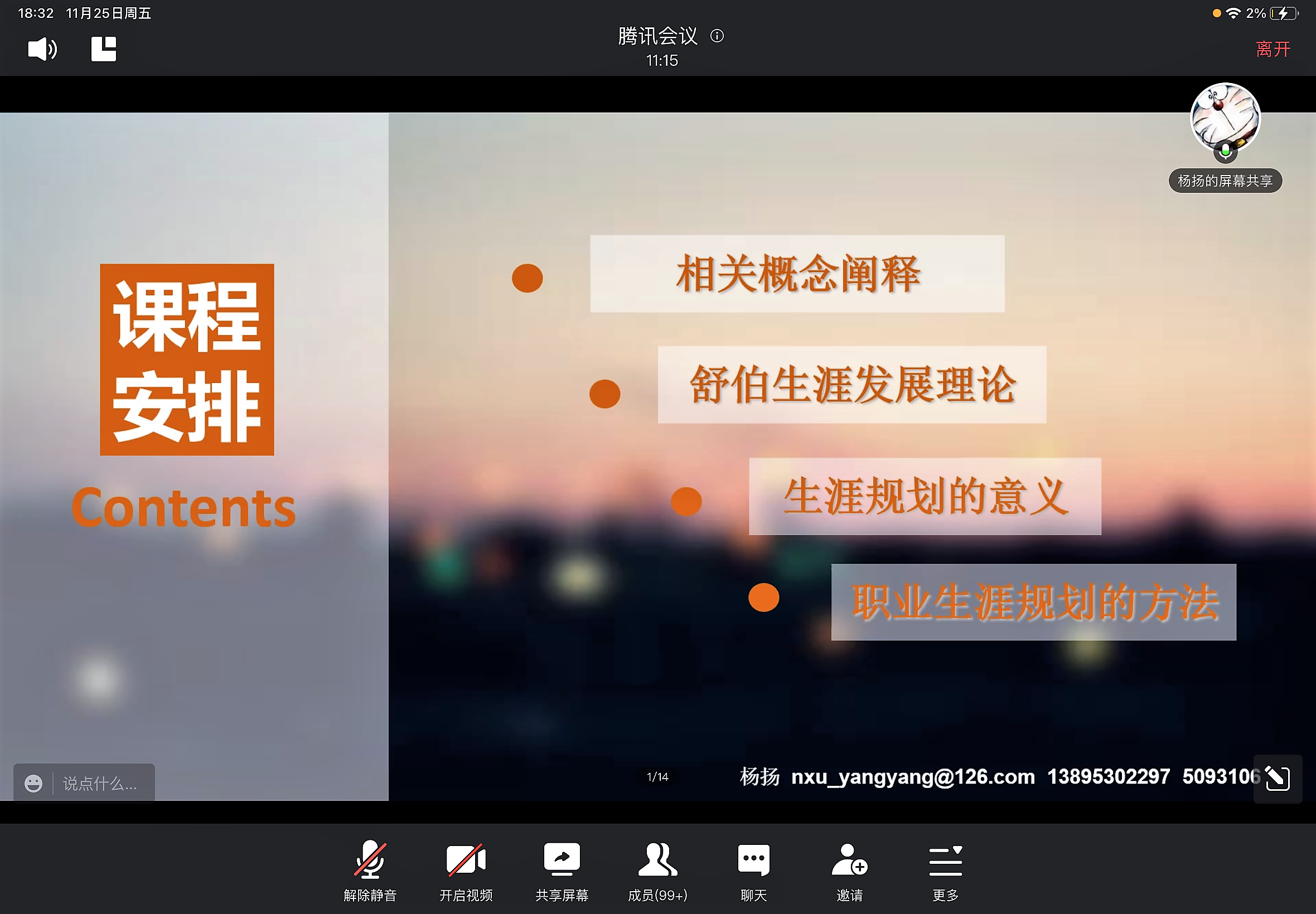 杨扬指出,职业生涯规划并不等于找工作,它是一个为实现自己的职业目标而预先进行生涯系统安排的过程。讲座中,她为与会同学讲解了舒伯的生涯发展理论,介绍了成长、探索、建立、维持和衰退五个生涯发展阶段的生活广度和由不同角色构成的生活空间,运用舒伯的彩虹图辅助说明人们在不同空间里扮演着不同角色,所有的角色都彼此相互影响,角色间有时甚至会出现矛盾或冲突,让人苦恼,进而提出生涯规划的意义——规划的核心就是在人生的每个阶段都活出自己最满意的样子,让自己不后悔。因为每个人精力、时间都是有限的,我们需要关注当下最重要的事情。接着杨扬系统讲解了进行职业生涯规划的方法,以帮助同学们找到合适的发展方向。最后,她用尼克•胡哲与保罗的两段励志故事来结尾,并叮嘱同学们:生命是宝贵的,人生是短暂的,我们每个人对于这个宇宙都是独一无二的存在,了解自己、珍视自己、做好自己的生涯规划,找到自己的人生主题,怀揣梦想、锚定目标、勇往直前,让自己变成自己想成为的人。