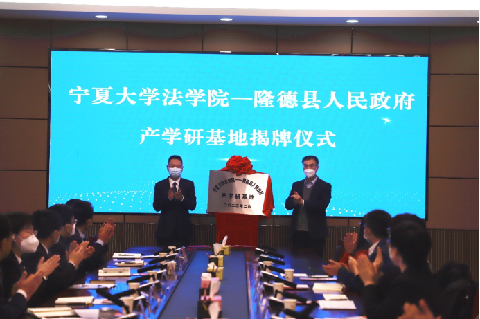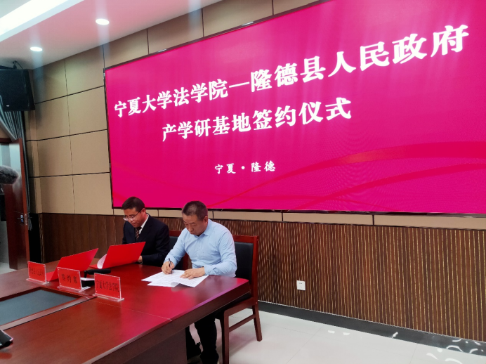 党委书记李治涛、院长吕耀军、副院长胡世恩等一行10人前往隆德县,与隆德县人民政府进行了产学研基地签约揭牌仪式。隆德县委书记刘斌,县委副书记、政法委书记兰秀全,隆德县委常委、政府副县长陈昊,隆德县全面依法治县委员会部分成员单位主要负责同志,各乡镇分管领导及律师代表参与此次活动。