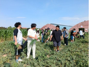 劳动实践课程第一站是贺兰县的金贵牡丹花乡。在这里,地方负责人不仅向同学们详细阐述了该产业的运营机制和未来发展蓝图,还引领同学们深入到瓜田、菜园和玉米地,亲身体验农耕的实际操作。同学们对此表现出极高的热情,深入田间地头,亲手除去杂草,深刻体会到了农业劳动的艰辛与满足。此外,活动还安排师生前往桃林进行采摘体验。