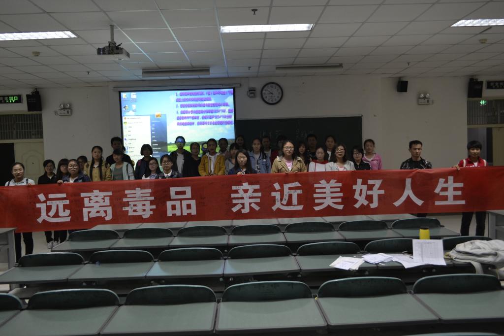 于5月2日晚在贺兰山校区文科楼分教室组织三个年级观看《湄公河行动》禁毒影片暨禁毒教育集体签名仪式。