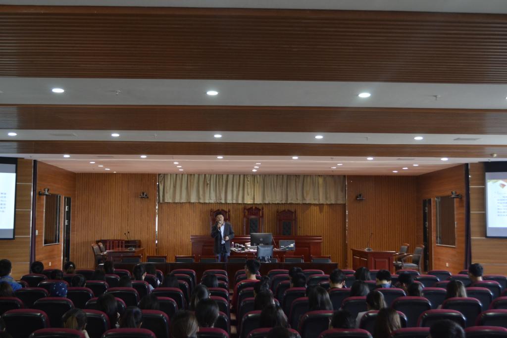 党委副书记崔明堂为2017届毕业生作“大学生资助政策暨诚信教育”宣讲报告