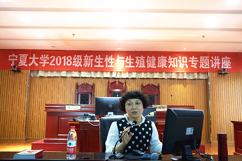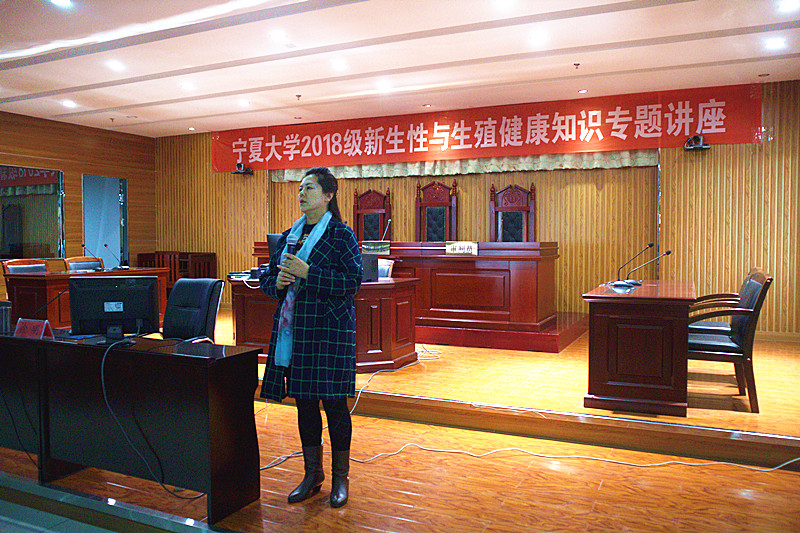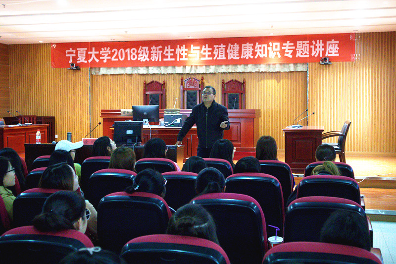 生物科学系徐明教授、宁夏疾病预防控制中心的吴忠兰老师,在文荟楼模拟法庭为2018级全体新生做“性与生殖健康知识”专题讲座。