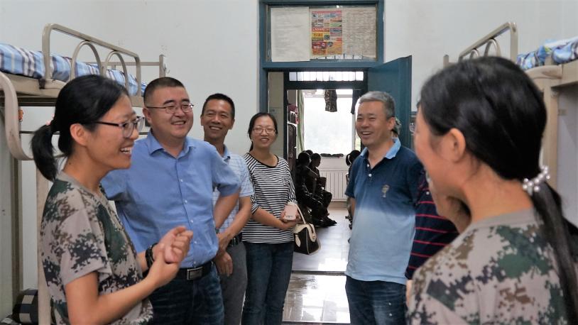 院长任军、党委副书记崔明堂、副院长尹强及辅导员老师深入学生宿舍看望新生。