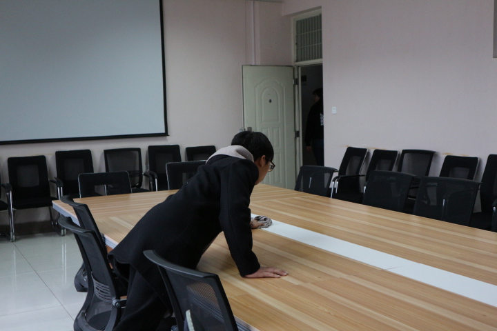 会议室和模拟法庭进行黑板、桌椅、地面等清扫工作。在打扫卫生的过程中,志愿者们学着干、抢着干,一个个干劲十足、毫不懈怠,积极用实际行动诠释着“雷锋精神”。