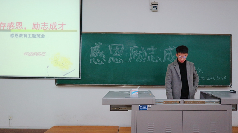 2020级各班分别在文荟楼组织开展“感恩·励志·成才”主题班会,由各班班长主持。