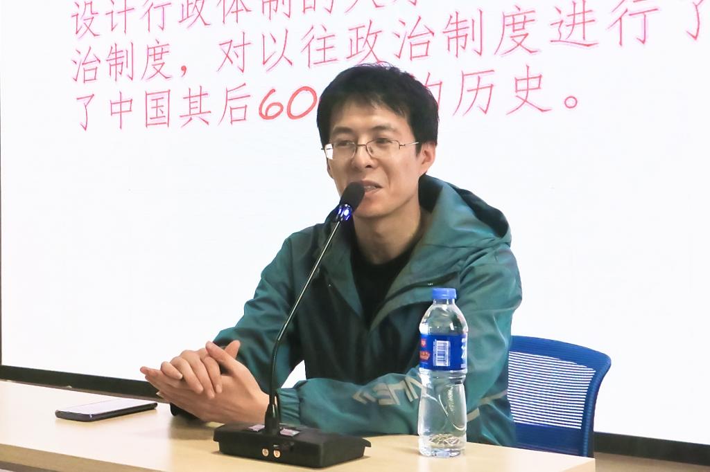 讲座伊始,贾陈亮从明太祖朱元璋的生平经历讲起,阐述了朱元璋个人经历对其称帝后行政制度构建的影响。随后,贾陈亮依据明朝建立初期的军事缺陷和政治局势分析了明长城、明城堡等一系列稳固政权举措建设的必要性。紧接着,贾陈亮详细讲解了明朝中央裁撤中书省、废除丞相而“千纲独断”、创制内阁,并在地方施行“三司”制、进行地方行政层级划分等一系列行政体制建设措施,生动阐述了明朝行政治理中将法律、机构、制度与官员建设结合而建立的一套完整的行政治理体系。