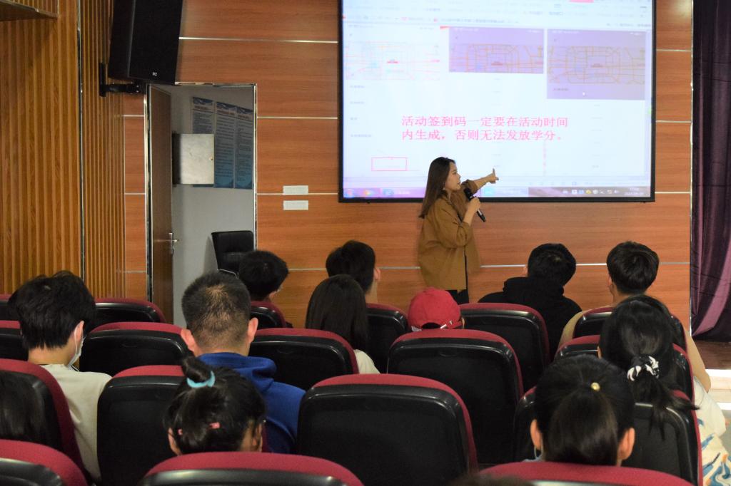 团委举办的《盗梦空间操作指南》专题讲座在文荟楼模拟法庭开讲。院团委智课服务部负责人金佳然为2021级新生宣讲相关内容,帮助新生对第二课堂学分体系有更加深入的了解。