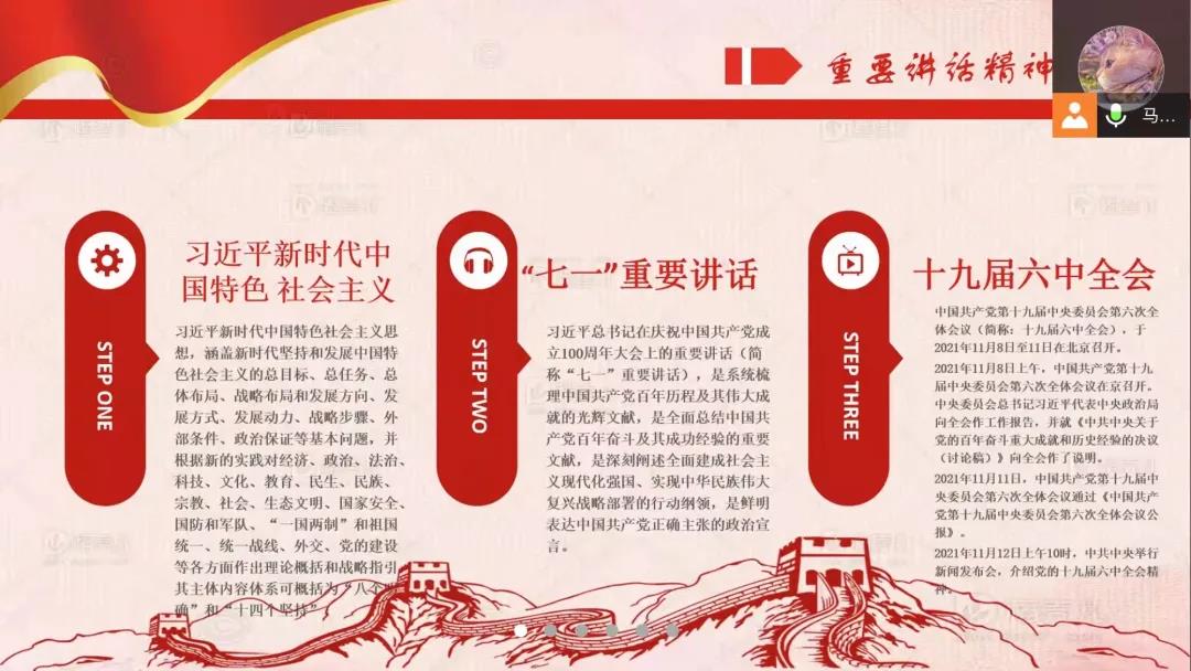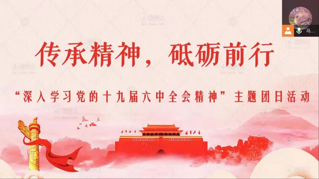 各团支部开展了“深入学习党的十九届六中全会精神”主题线上团日活动,各团支部以主题分享、观看相关视频等方式进行。