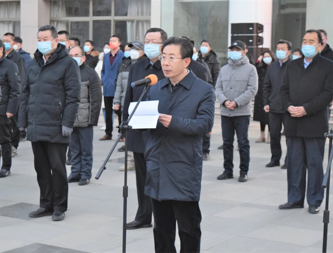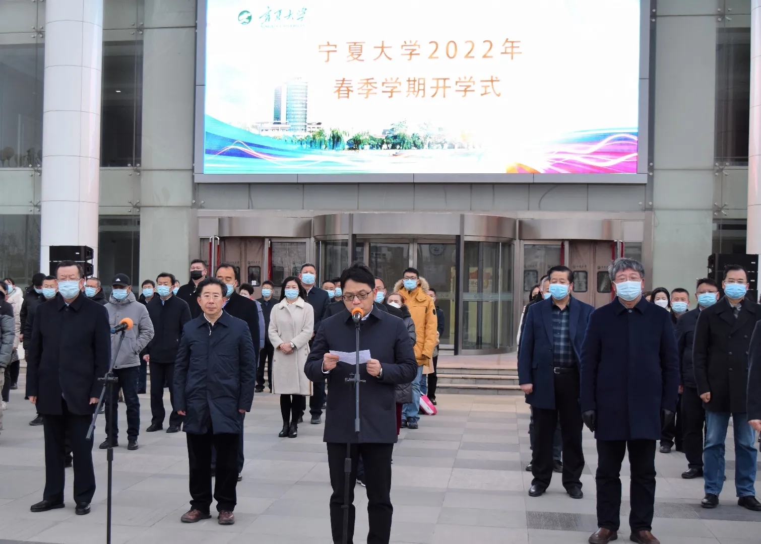 2021-2022学年春季学期升旗仪式于贺兰山校区德勤楼前举行,仪式由校党委副书记、校长彭志科主持,全体校领导及部分学生代表到场参加。