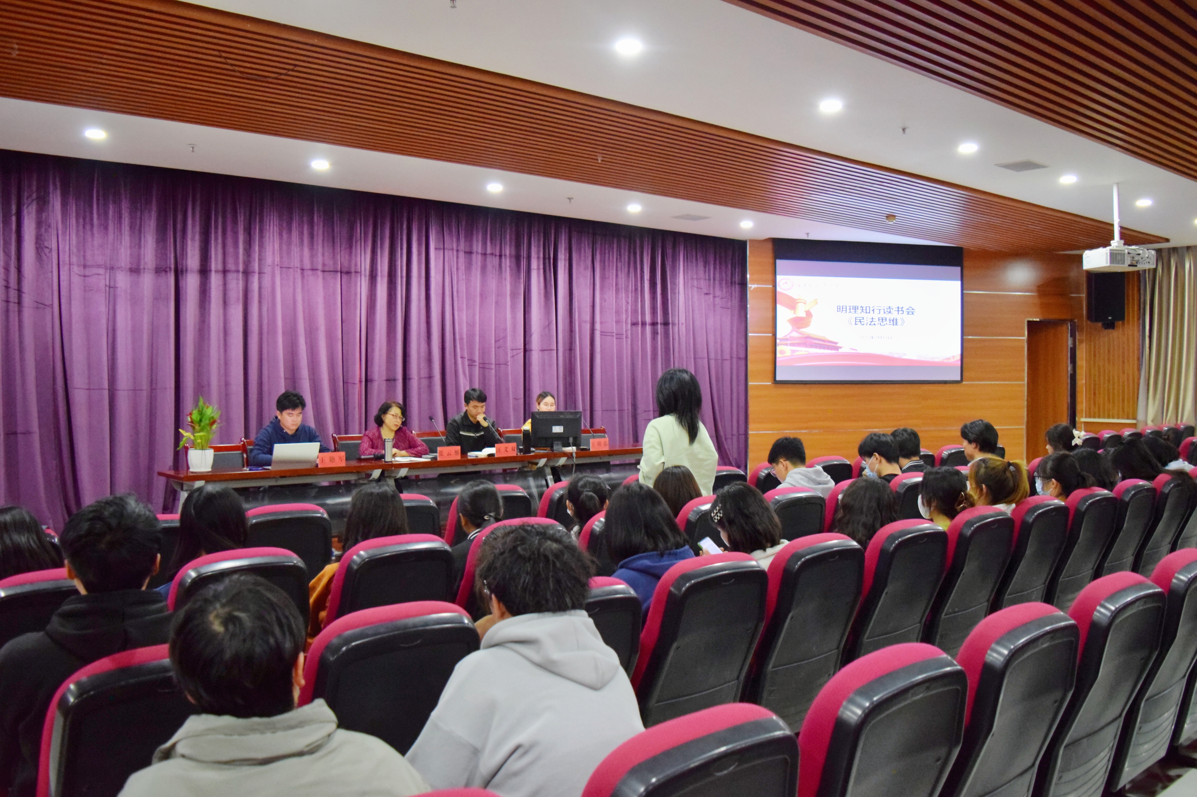 于文荟楼模拟法庭举行明理知行读书分享会,本次分享会主持人为2020级诉讼法专业研究生王艳军,报告人为2020级法学二班本科生王琪茹,与谈人法律系副教授张云雁及2019级民商法学研究生汪义双。2020级法学专业本科生及2021级法学专业研究生参加本次活动。