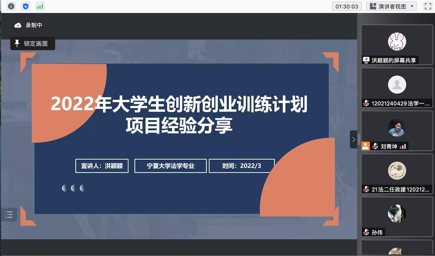 培训中,2018级洪颖颖和2020级战奇两位同学还分享了自己的项目经验与成果,并结合亲身实践经历,提出了积极的建议与意见,为本次参与大创的学生提供了有益的借鉴与参考。