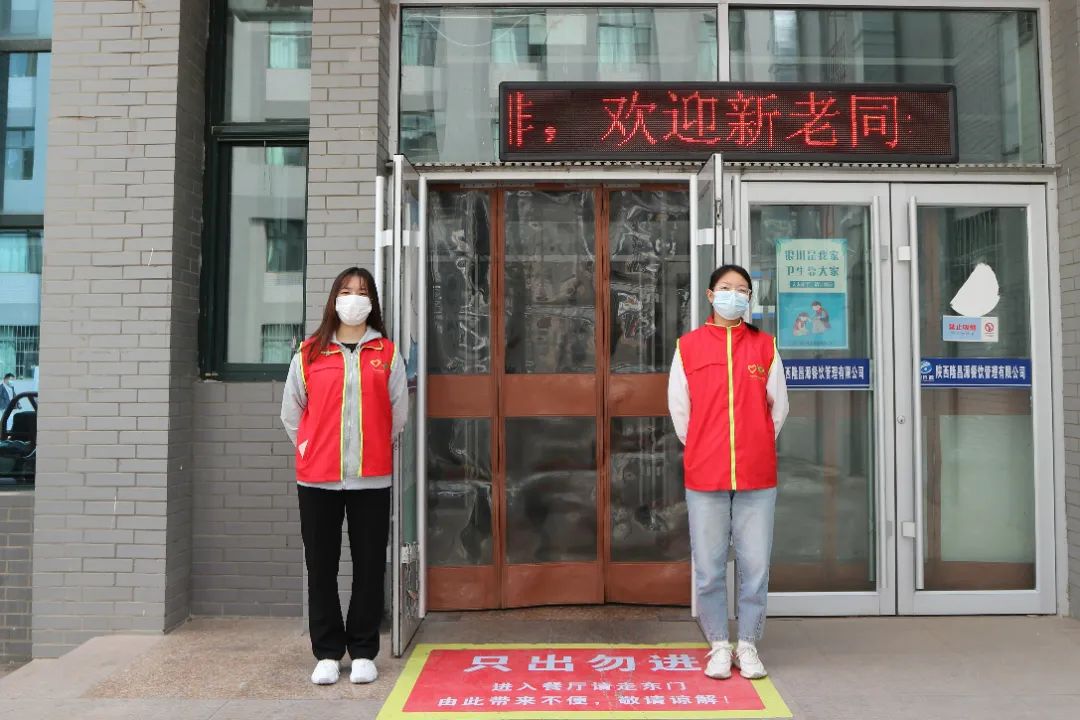 分会在贺兰山校区组织了30名志愿者提醒同学们佩戴口罩,在各个餐厅门口,都可以看到志愿者们有序站岗的情景,他们提醒过往的同学戴好口罩、注意保持间距,为筑牢校园安全防线,共同守护美好校园贡献力量。