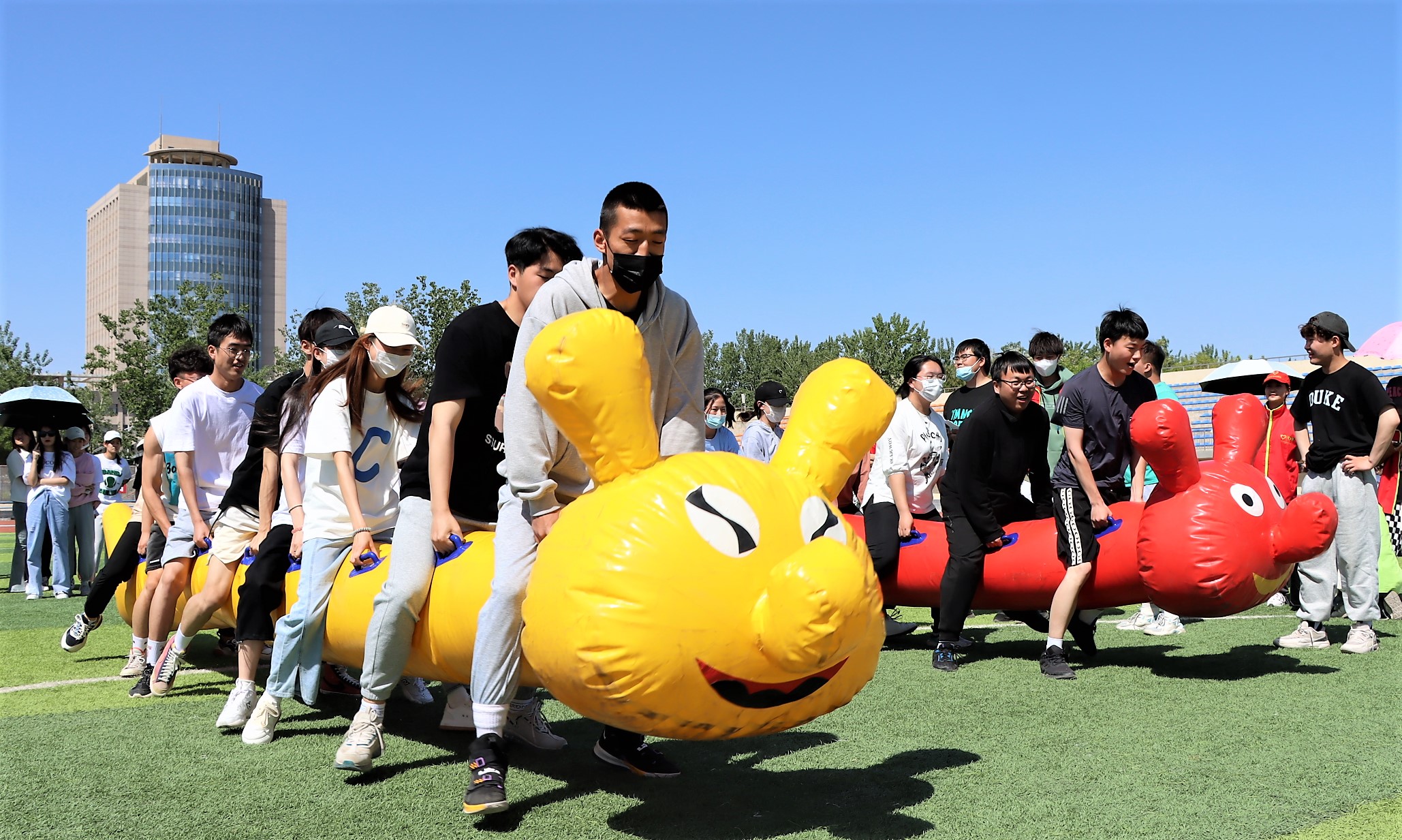 团委、学生会举办的“运动青春快乐无限”主题趣味运动会于怀远校区足球场火热开赛。