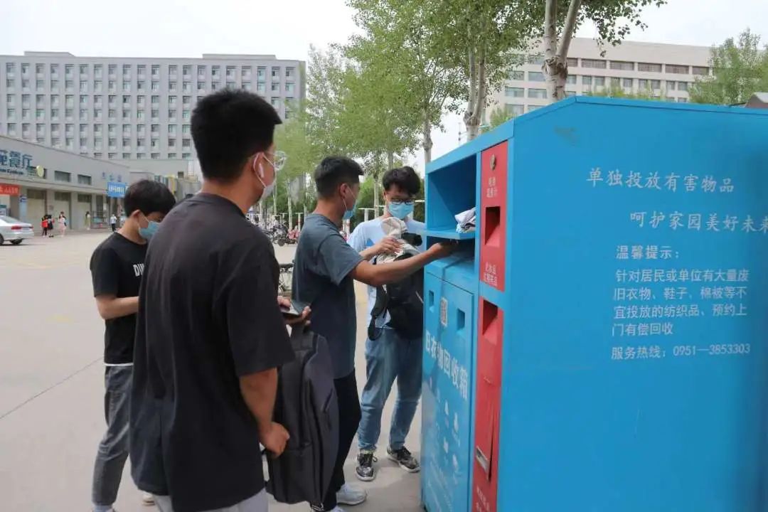 团委学生会的带领下,同学们到指定地点进行衣物捐赠,并在“到梦空间”签到,同时对捐赠衣服的同学进行登记。第三阶段是捐赠的收尾工作,工作人员通过支付宝APP中的“白鲸鱼旧衣服回收”小程序,预约旧衣服回收,传递爱心,换取“绿色能量”。