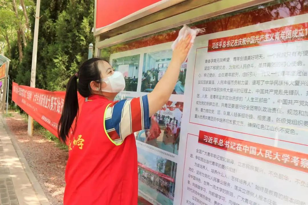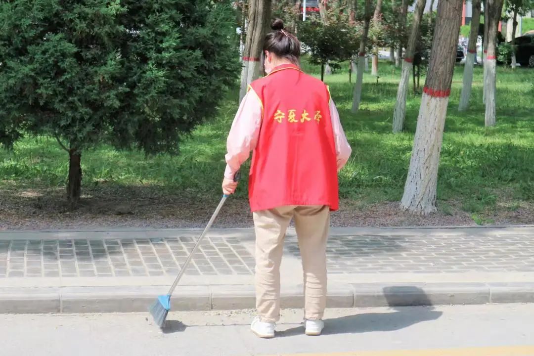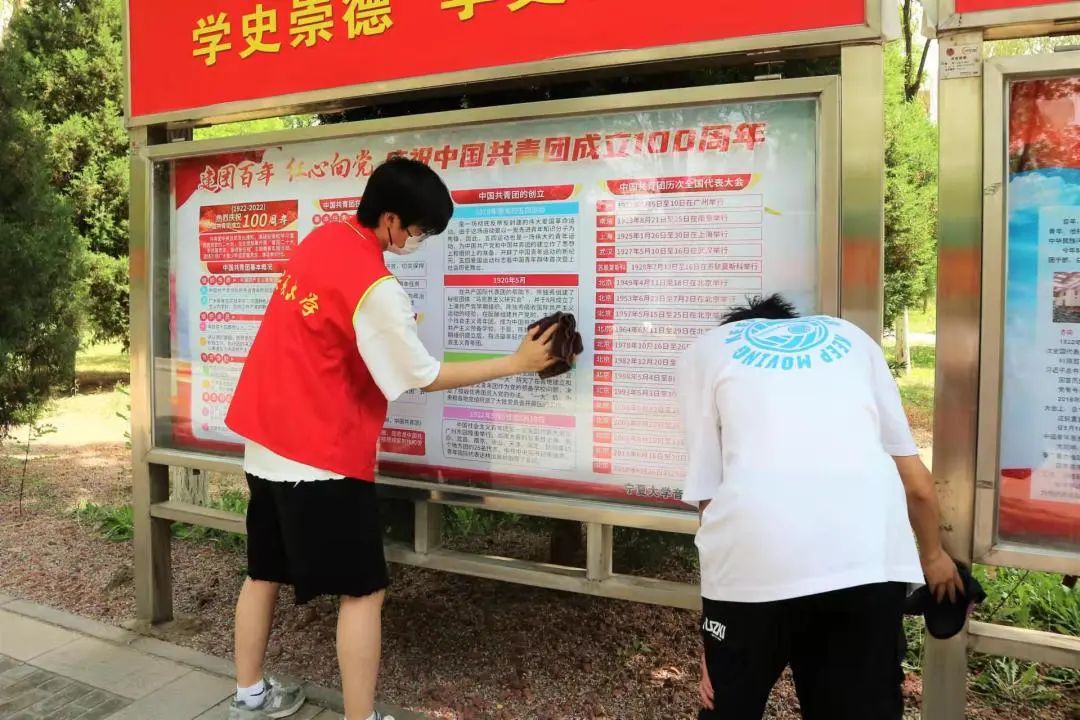 组织第十四期“青年马克思主义者培养工程”暨团学骨干培训班学员在贺兰山校区进行宣传栏、石椅清洁,垃圾清扫捡拾志愿活动。