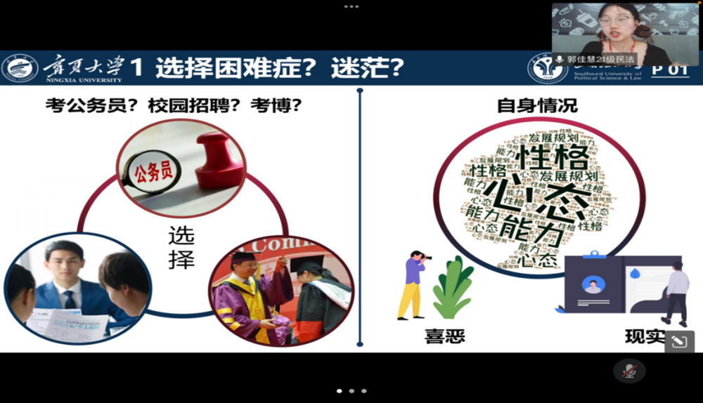 四位优秀的硕士毕业生:郭佳慧(现西南政法大学博士研究生)、王燕子(考入云南大学攻读博士研究生)、汪一双(考入南开大学攻读博士研究生)、罗文秀(选调生考入自治区高级人民法院)进行分享。旨在通过优秀毕业生分享考博、考公等学习、就业经验为赌场老虎机攻略