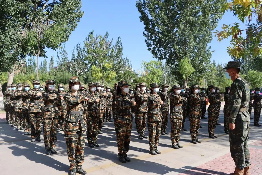 立正、稍息、跨立”,是他们听到最熟悉的词汇;“齐步走、立定”,瞬间让他们斗志昂扬!从杂乱无章到整齐划一,锦瑟青春由你们刻画。炎炎烈日下 ,同学们一遍又一遍训练着, 严肃而认真 ,短暂的休息中偶尔有一两个同学的才艺表演 , 为这军训生活增添了几分欢声笑语言。