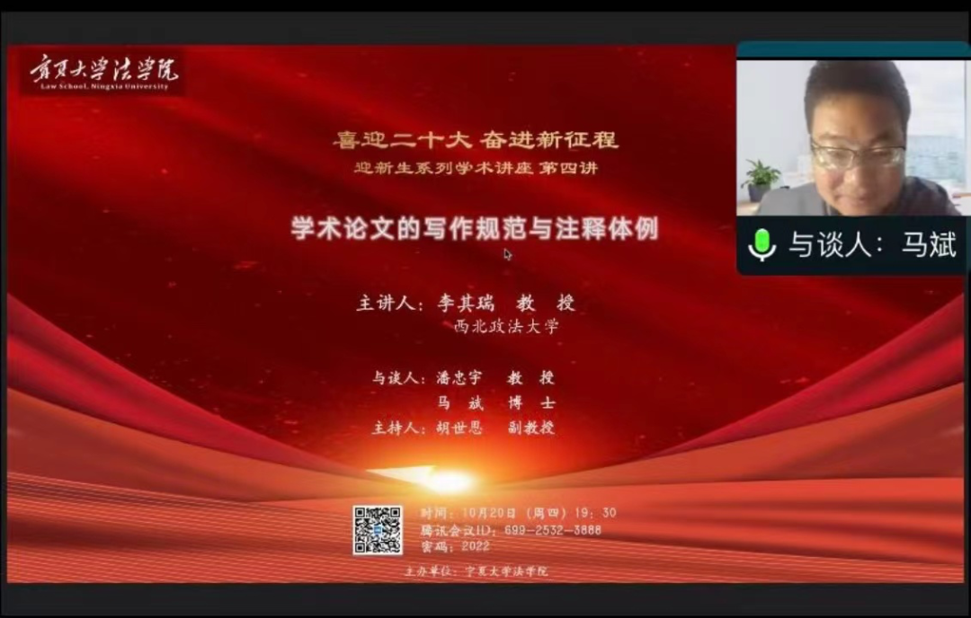 10月20日晚7:30,学术讲座第四讲围绕“学术论文的写作规范与注释体例”展开。本次讲座特邀西北政法大学法治文化研究中心主任、马克思主义法学研究所所长李其瑞教授担任主讲嘉宾,赌场老虎机攻略
