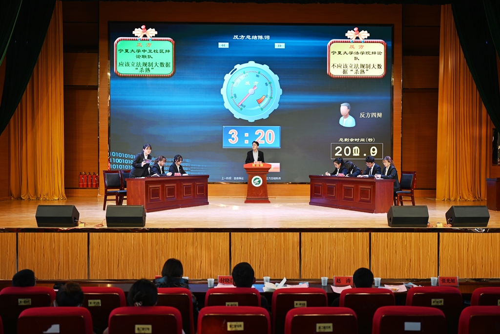 辩论队认为不应该立法规制,双方从法律角度,从现实实际进行了讨论,场上队员在表达观点、思维碰撞的同时,也提高了学法用法的意识。