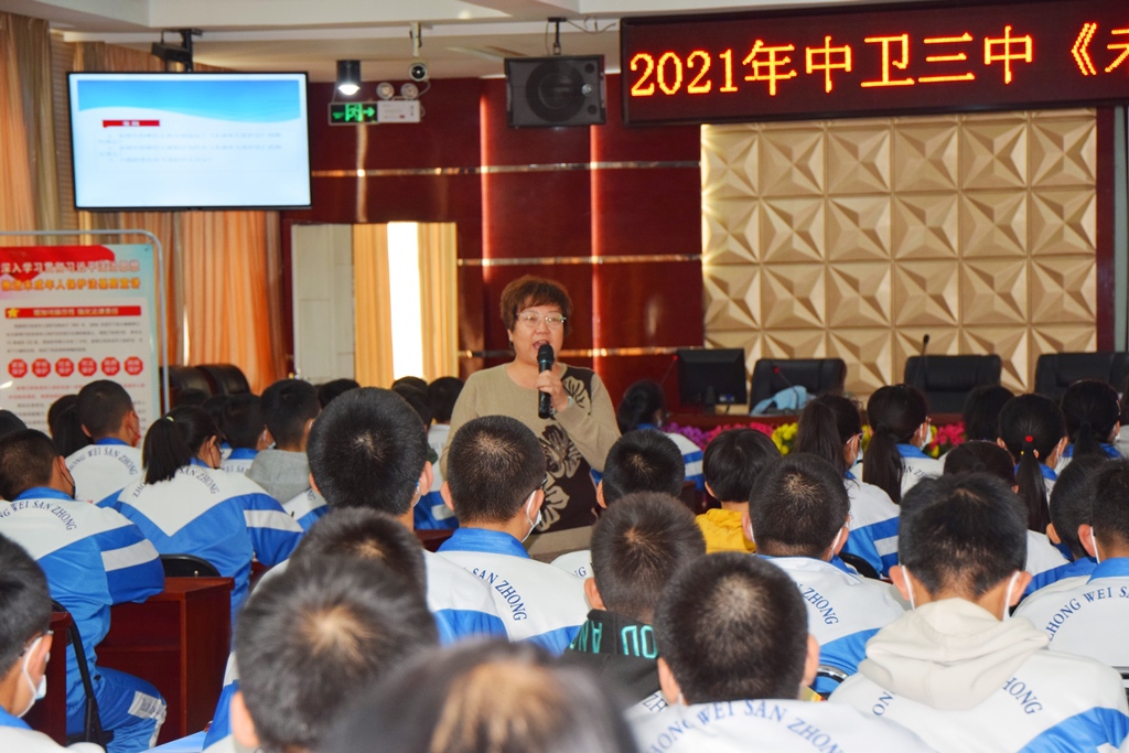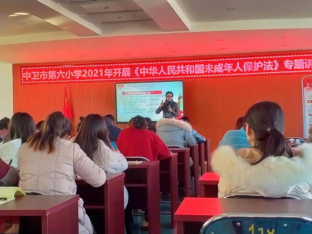 中卫校区做“习近平法治思想专题辅导讲座”;在中卫三中、中卫六小做“中华人民共和国未成年人保护法”专题普法讲座。