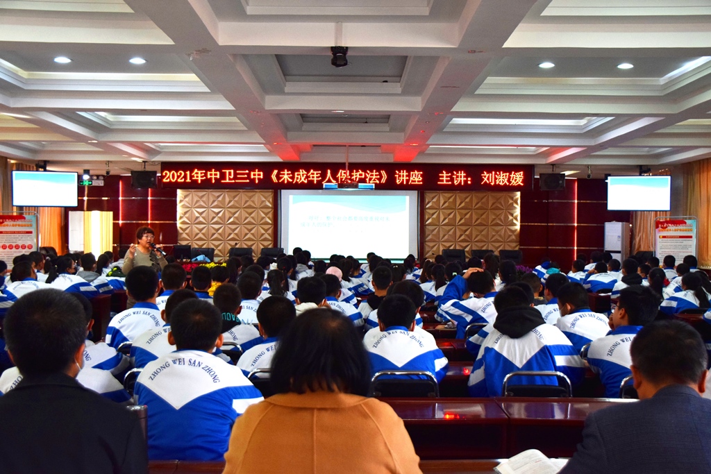 中卫校区、中卫三中和中卫六小同时开展普法宣教进校园活动,围绕习近平法治思想“中华人民共和国未成年人保护法”开展专题讲座、大学生法治辩论赛等形式多样、内容丰富的普法活动,掀起中卫市学习未成年人保护法与相关法律知识的热潮。
