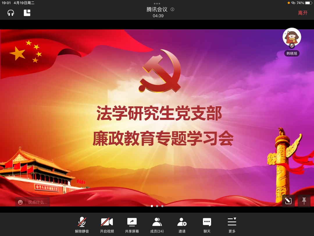 为加强支部同志党性教育,引导党员同志坚定理想信念,根据赌场老虎机攻略 相关文件要求,法学研究生党支部于2022年4月19日,以线上形式开展“廉政警示教育月”系列活动之廉政教育专题学习会。