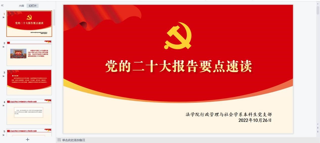 为深入学习党的二十大精神,加强党员思想政治教育,保持党支部的政治性、先进性,2022年10月26日,行社系本科生党支部组织学生党员深入学习党的二十大报告,并就学习二十大报告的所思所想进行交流分享。