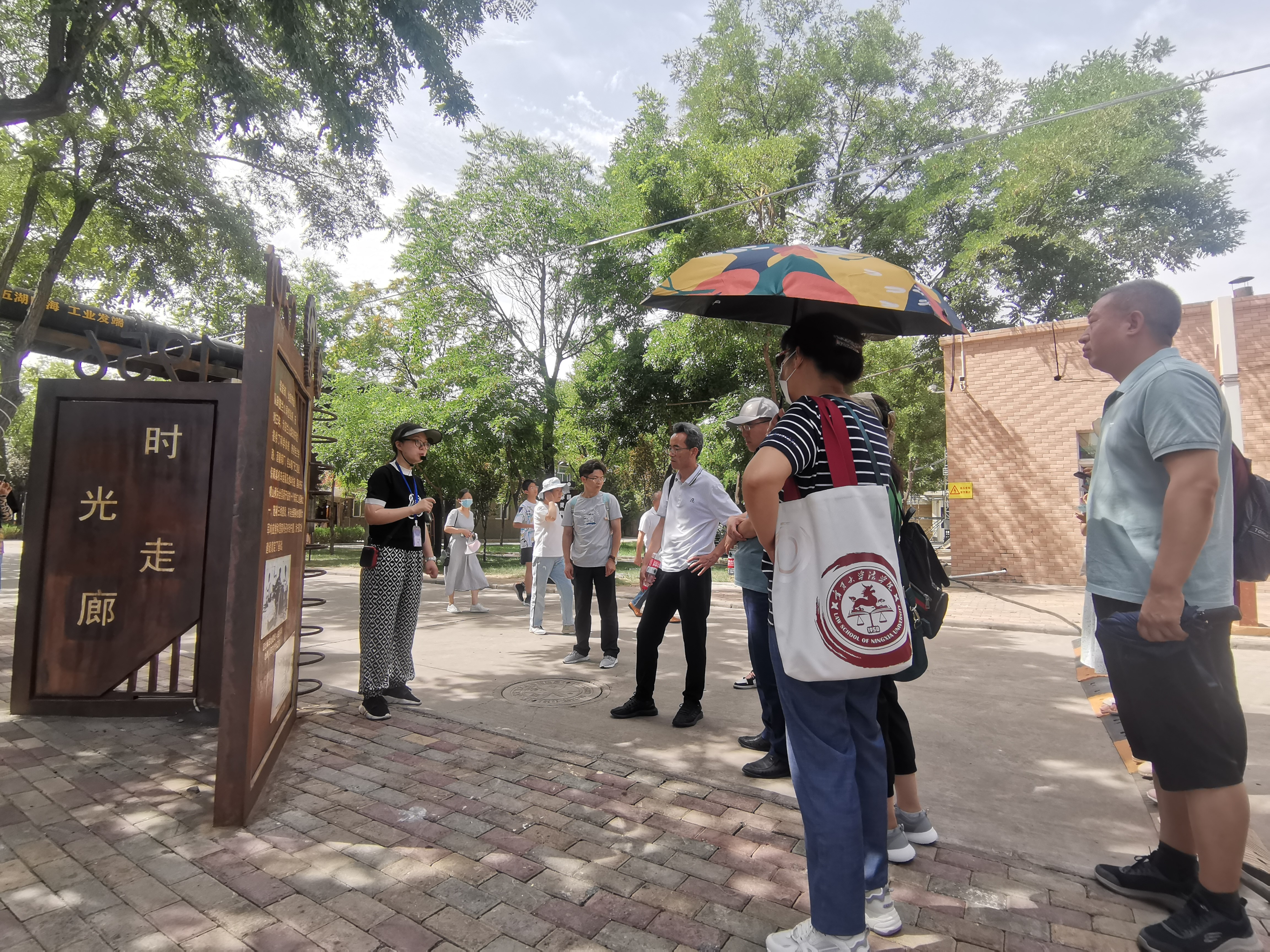 教职工在石嘴山市石炭井工业遗址公园导游的引领下开始了一段追寻前人艰苦奋斗历程之旅。遗址公园门前的通道上,镌刻着来到石炭井的建设者的年代和人数:1951年,203人,我们来自北京,在贺兰山下,吹响了开发建设集结号;1956年,1135人,我们来自陕西,在石嘴山拓荒安家;1957年,5000人,我们来自山西,在贺兰山腹地筹建石嘴山矿务局;1958年,6253人,我们来自河南,石嘴山成为我们的第二故乡……漫步走过这条特别的通道,仿佛重走了一遍建设者们历时70多年的奋斗足迹。